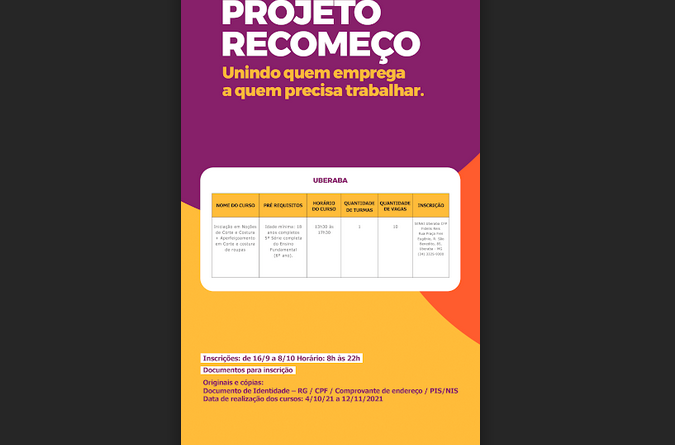 Read MoreOportunidades voltadas a maiores de 18 anos são em Barbacena, Uberaba e Sete Lagoas Iniciativa do Governo de Minas, o