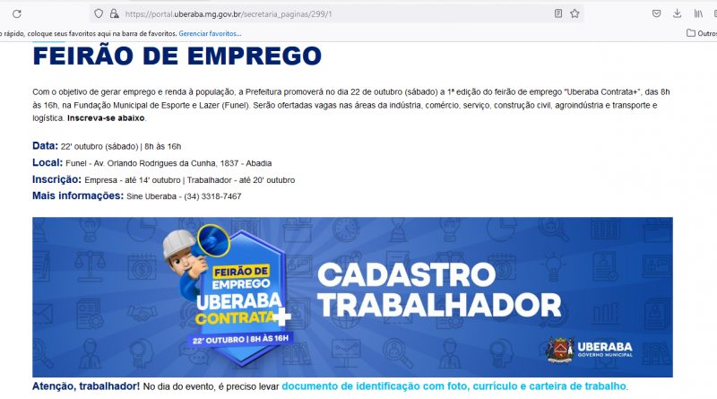 Read MorePromovida pela Prefeitura de Uberaba, a 1ª edição do feirão de emprego “Uberaba Contrata+” acontece no sábado (22), das 8h