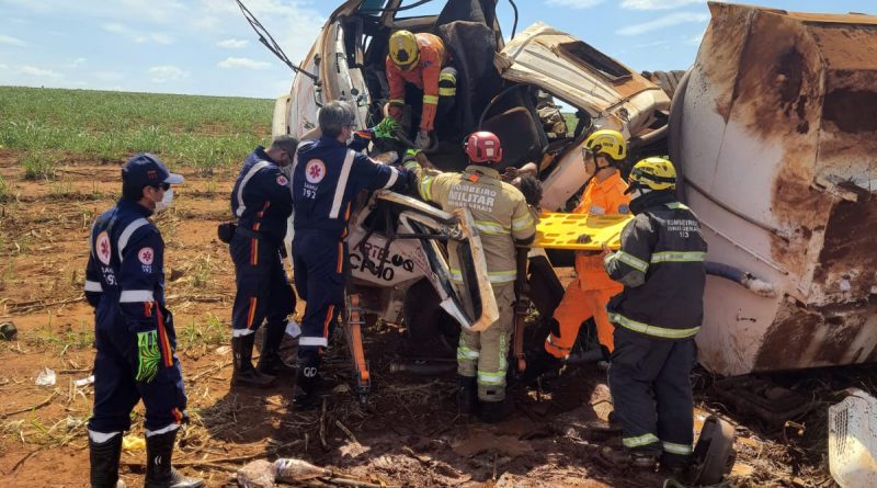 Read MoreFoto: DivulgaçãoVeículo ficou destruído após o acidente Um capotamento de caminhão deixou um motorista e um passageiro feridos. O veículo