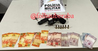 Ler maisFoto: DivulgaçãoSimulacro de arma, munições, drogas e dinheiro foram apreendidos pelo TM Um adolescente suspeito de tráfico de drogas foi