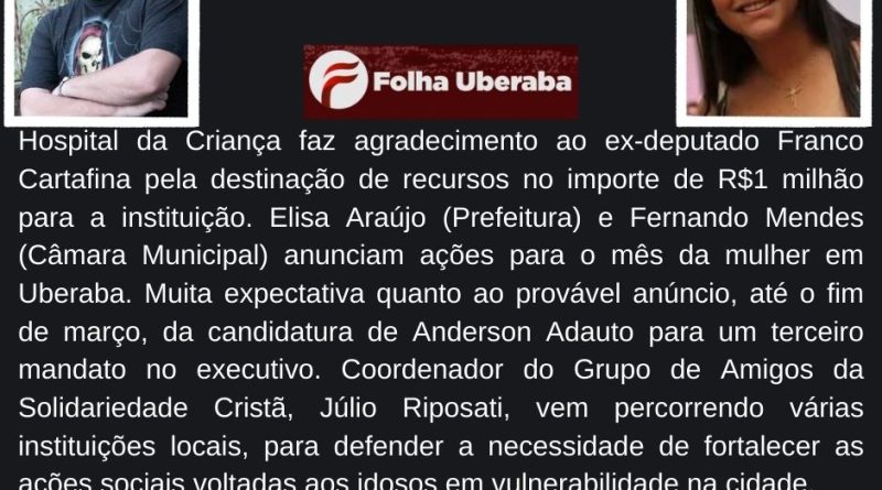 Read MoreReconhecimentoA presidente do Hospital da Criança publicou nota em agradecimento ao ex-deputado Franco Cartafina por verba no importe de R$1