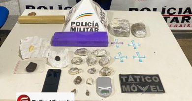 Ler maisFoto: DivulgaçãoMaconha, haxixe, cocaína e materiais foram encontrados com o detido Denúncias anônimas levaram policiais militares a prenderem um jovem