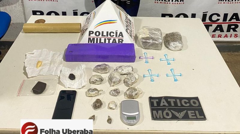Read MoreFoto: DivulgaçãoMaconha, haxixe, cocaína e materiais foram encontrados com o detido Denúncias anônimas levaram policiais militares a prenderem um jovem