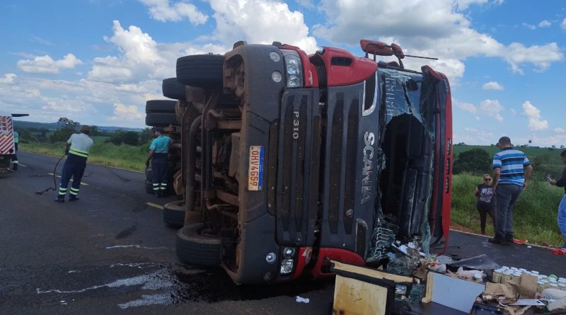 Carreta tomba e deixa motorista ferido na Ligação 798