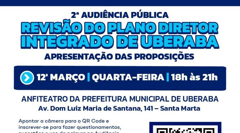 Read MoreA Secretaria de Planejamento (Seplan) da Prefeitura de Uberaba promove, nesta quarta-feira (12), a 2ª Audiência Pública de Revisão do