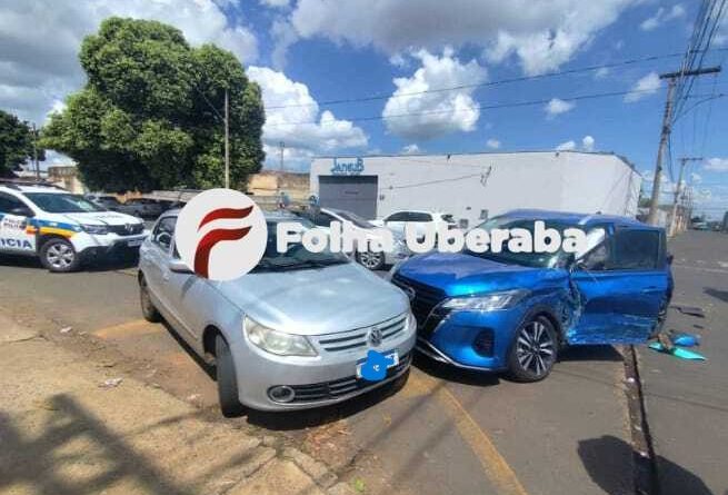 Uberaba -MG -Foto: DivulgaçãoCarros ficaram danificados após as batidas Um acidente envolvendo três veículos sendo, um caminhão e dois carros,