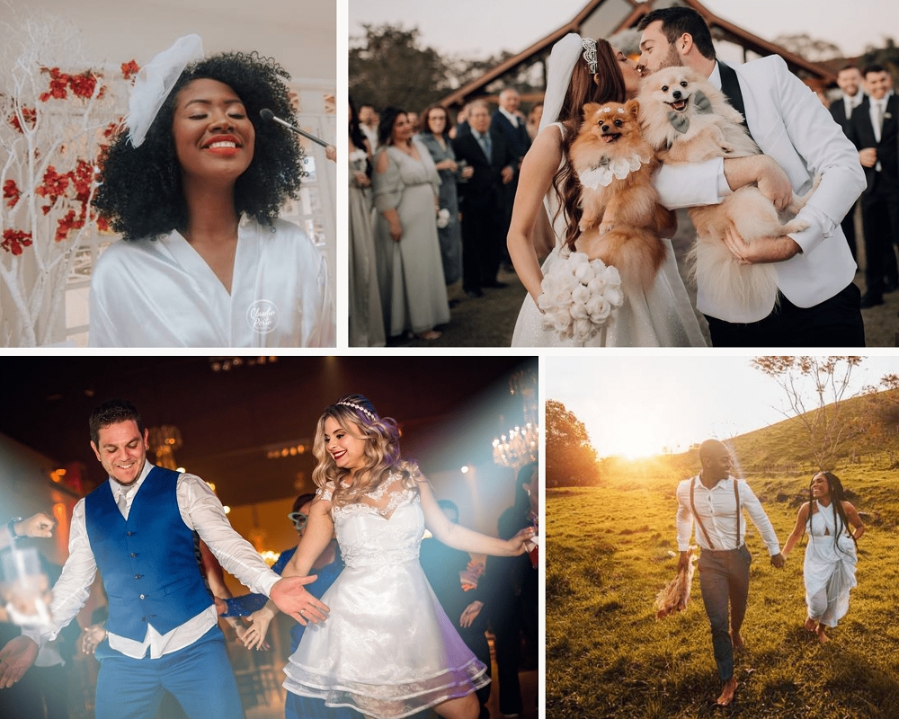 Também serão vistos registros dos casamentos em reels, vídeos-reportagens e vídeos 360º. Os desafios das redes sociais serão adotados como uma maneira de entreter os convidados. É cada vez mais comum ver entradas de floristas adultas e performances de padrinhos.