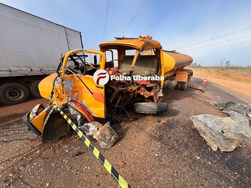 No local, os policiais conversaram com o motorista de um bitrem, e ele relatou seguia sentido Uberaba/Nova Ponte e ao passar pelo KM 104, devido a forte neblina, não viu um caminhão Mercedes Benz de cor amarela que atravessou a rodovia na frente da carreta e houve a batida transversal. Com o impacto, o caminhão ficou com a cabine e lateral completamente destruídos e o condutor teve vários ferimentos.
