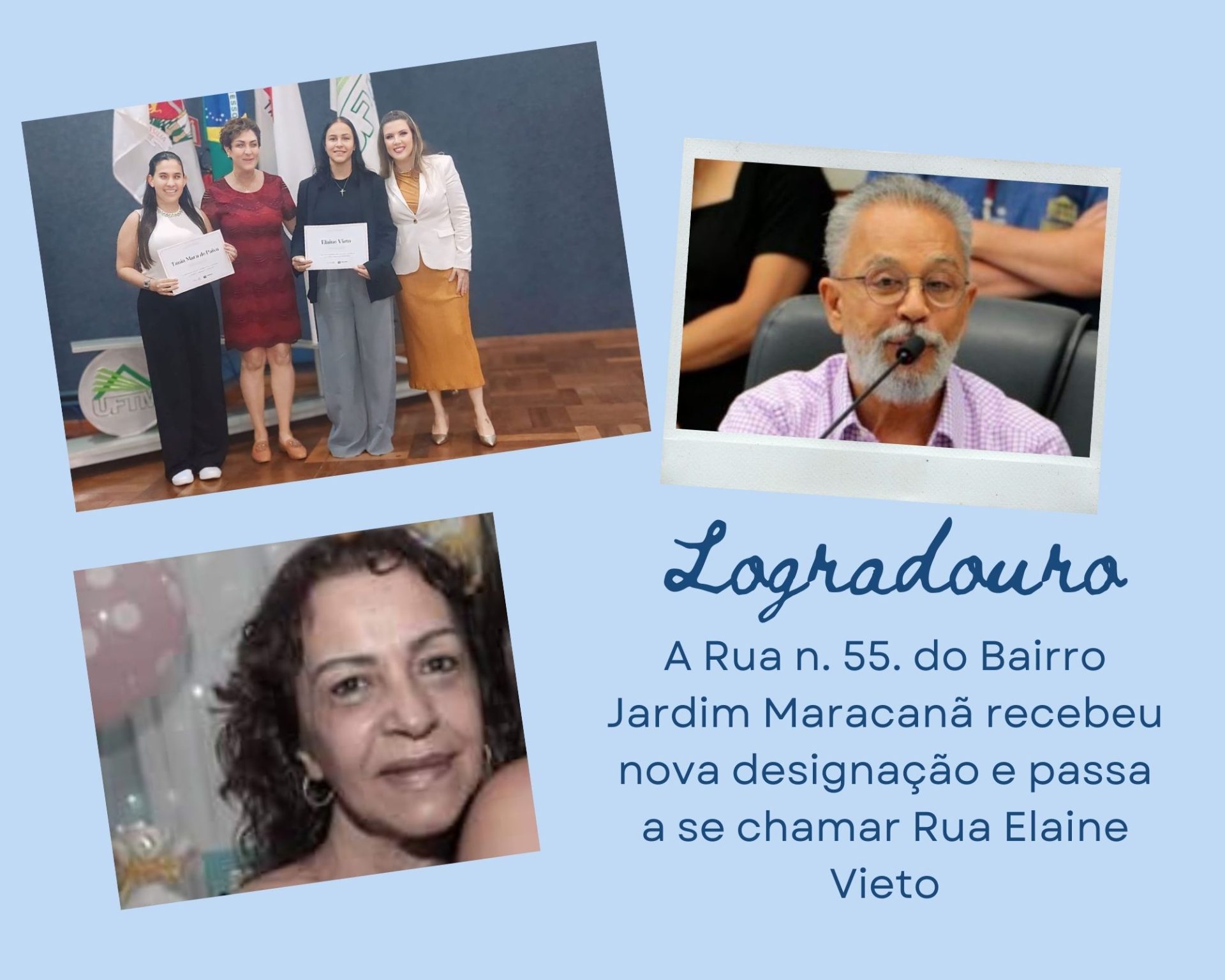 A jornalista Leilane Vieto, uma das responsáveis pela Coluna Acidez Urbana!, recebeu na noite ontem, das mãos da prefeita Elisa Araújo (PSD), o certificado de designação de logradouro público com o nome de sua mãe, a técnica de enfermagem Elaine Vieto. A profissional da saúde, que integrou o pelotão de frente, da equipe do Hospital das Clínicas da Universidade Federal do Triângulo Mineiro, na luta contra a pandemia de Covid-19 e foi membro do Conselho Deliberativo da torcida organizada Avante Naça (Nacional Futebol Clube), faleceu em 2021, vítima de câncer. A homenagem encontra origem em Projeto de Lei do vereador Paulo César Soares (China) aprovado ano passado pela Câmara Municipal de Uberaba.