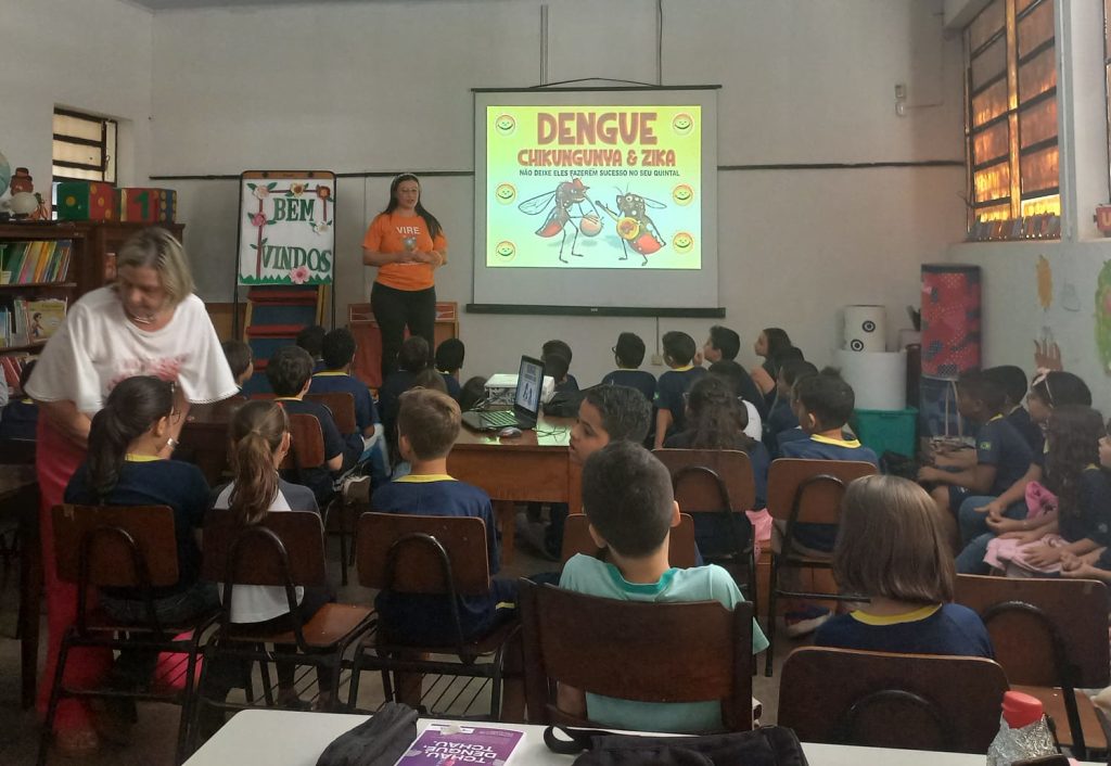 O Departamento de Controle de Endemias e Zoonoses atua em ações educativas constantes, voltadas ao combate à dengue, destacando parte dos agentes para promover atividades em escolas. A equipe leva informações sobre animais sinantrópicos, reciclagem e combate ao Aedes aegypti, mosquito transmissor da dengue, chikungunya e zika.