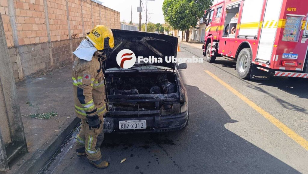 Um incêndio em veículo mobilizou equipes do Corpo de Bombeiros hoje em Uberaba. Apesar dos danos, não houve vítimas.