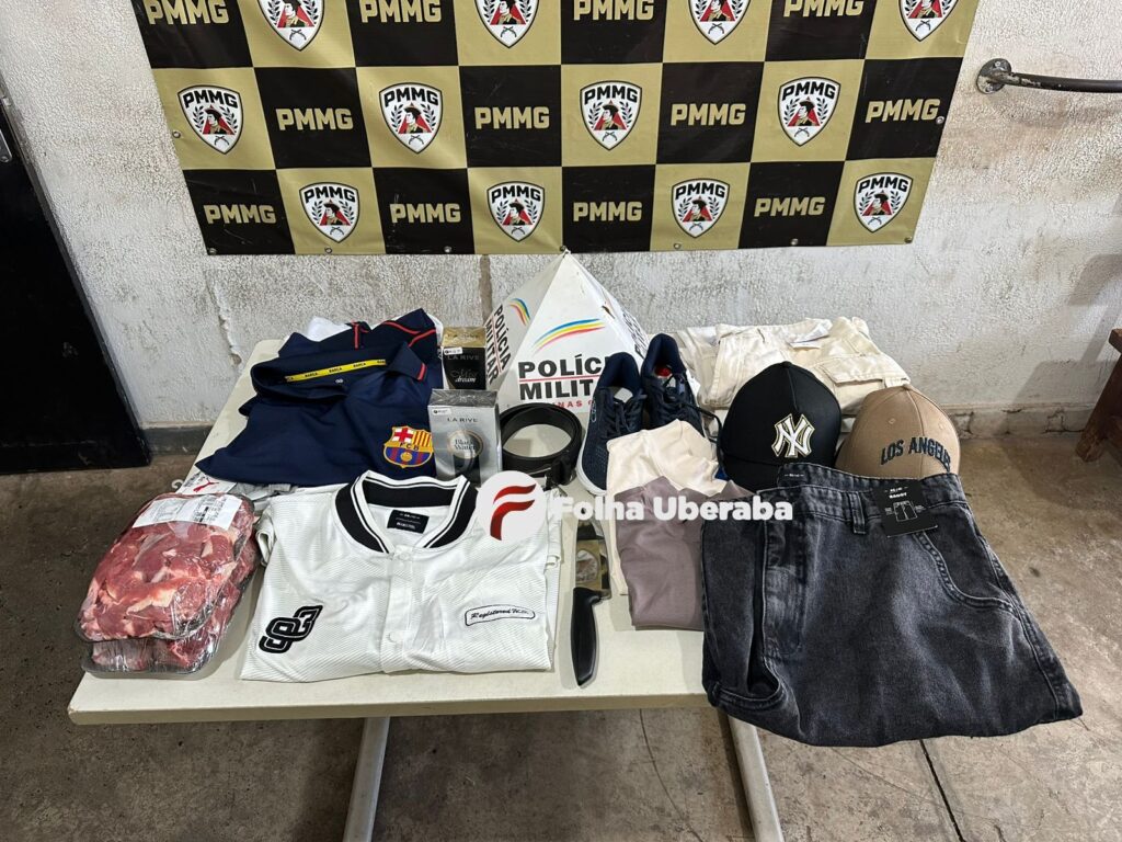 De acordo com informações apuradas pela Folha Uberaba, as prisões foram realizadas no cruzamento entre as ruas José de Alencar e São Benedito, onde os policiais militares da 212ª Companhia faziam patrulhamentos preventivos e viram um casal em atitude suspeita. Ao perceber a presença policial, eles disfarçaram e caminharam em direções opostas, sendo que os dois foram abordados e identificados. Durante buscas pessoais, os militares encontraram com os envolvidos uma camiseta de time de futebol, uma calça jeans, dois bonés, um par de tênis, camisas sociais, um cinto, além de uma camiseta gola polo e bandejas de carnes lacradas. Eles realizaram levantamentos e constataram que os materiais foram furtados em um supermercado e também em lojas em um shopping na Vila Olímpica. O casal acusado de furto qualificado foi preso em flagrante e levado até a delegacia de Polícia Civil para esclarecer os fatos.