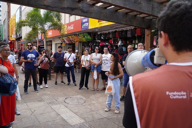 Mais de 50 participantes se reuniram para o segundo Circuito Viva o Centro Solidário (7º do projeto original), que aconteceu no último sábado (11). Eles visitaram prédios históricos e a própria Praça Rui Barbosa. O evento é uma parceria da Secretaria de Planejamento (Seplan), Fundação Cultural, Arquivo Público e Secretaria de Desenvolvimento Social. Esta edição contou ainda com o apoio da Câmara Municipal e da Secretaria de Defesa Social, que abriram o Paço Municipal e o prédio do antigo Jockey Club de Uberaba aos visitantes.