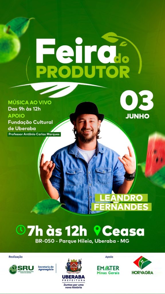 Já a atração musical, deste sábado, fica por conta do cantor Leandro Fernandes. O seu repertório inclui MPB, sertanejo e pagode.