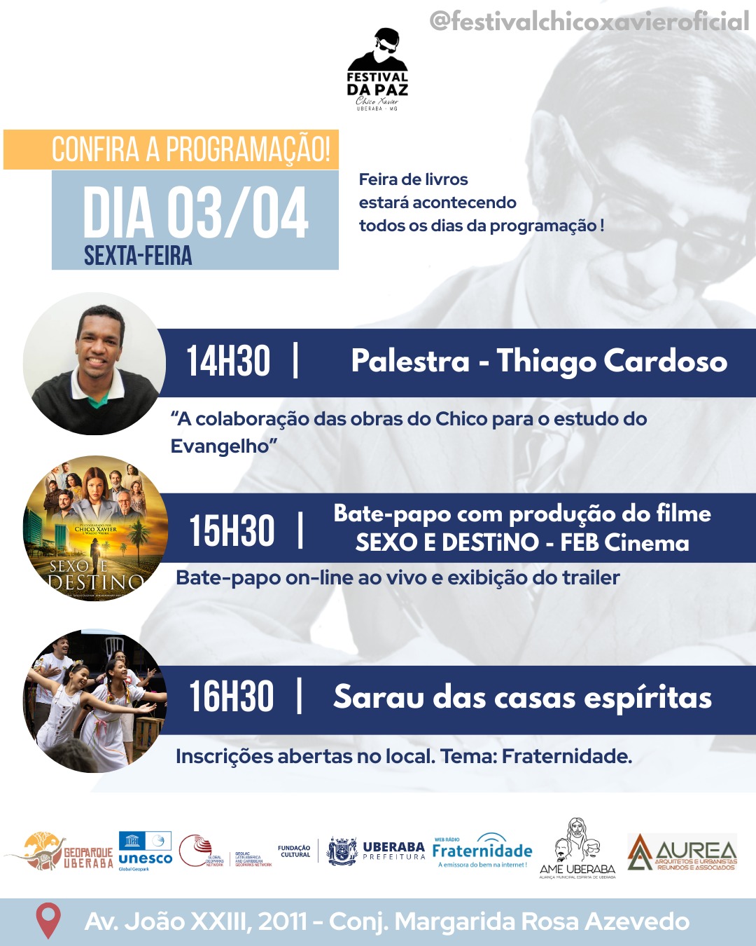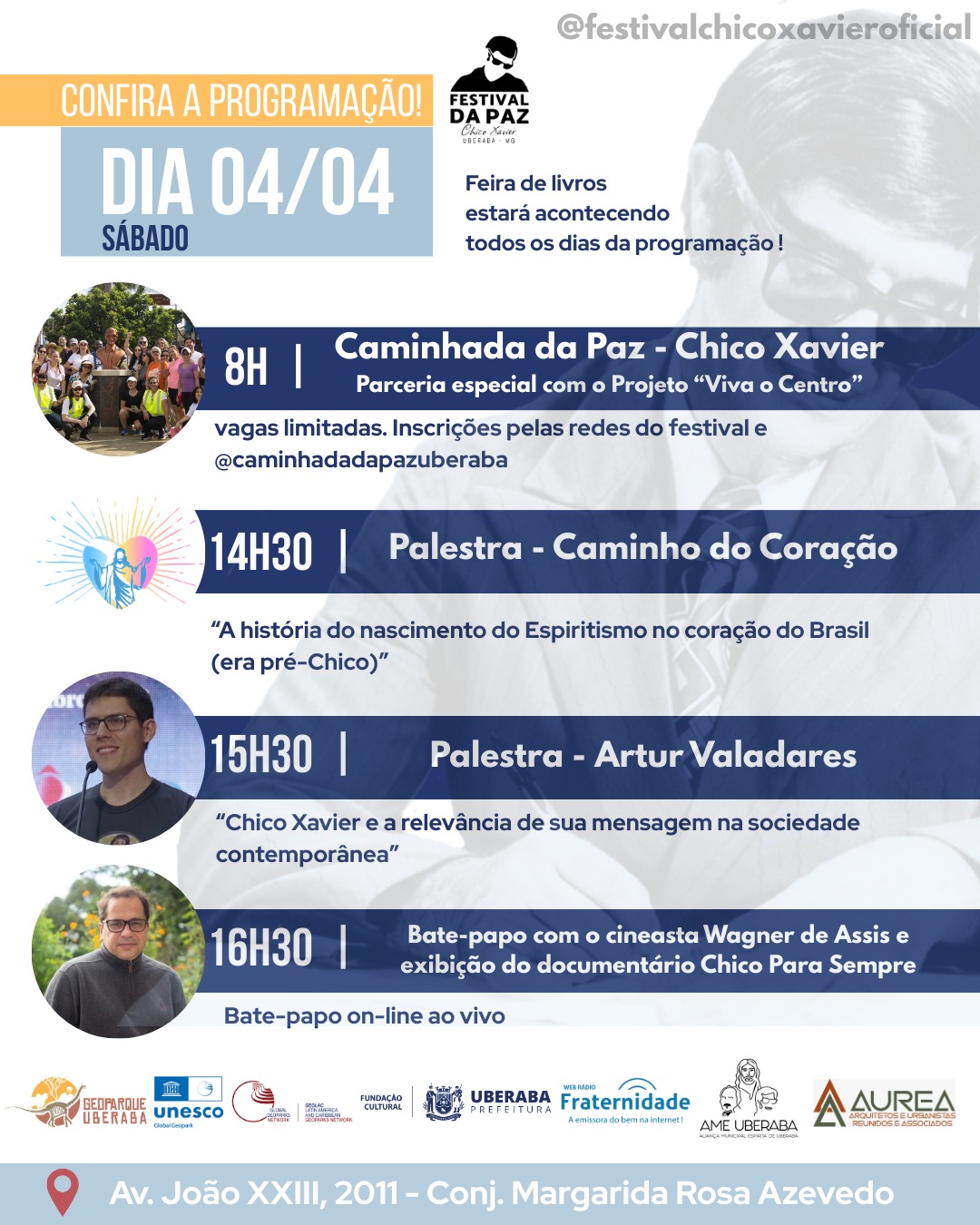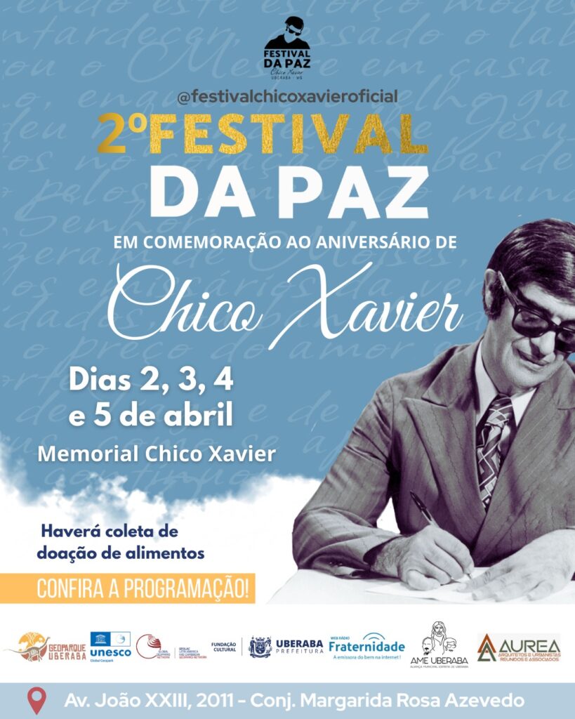 “O Festival da Paz é uma oportunidade de reunir a comunidade em torno dos valores deixados por Chico Xavier, promovendo a cultura e a espiritualidade como ferramentas de transformação social”, destacou o presidente da FCU, Cássio Facure.