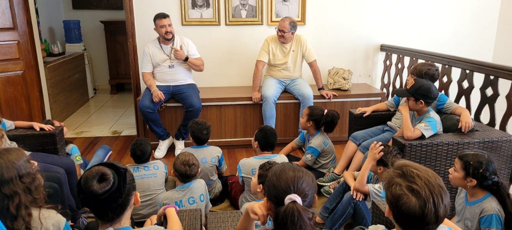 Vinte alunos do terceiro ano do Ensino Fundamental I da Escola Municipal General Osório, da cidade de Água Comprida, visitaram a sede da Fundação Cultural de Uberaba (FCU), nesta quarta-feira (6), durante uma ação de Educação Patrimonial guiada pelo professor e historiador Gustavo Vaz, do Departamento de Fomento à Cultura e Patrimônio Histórico.