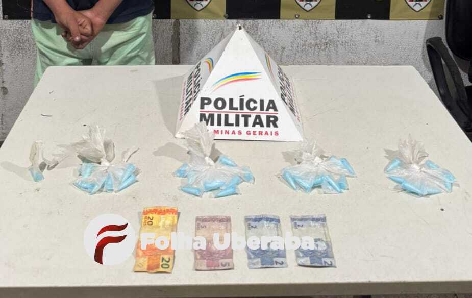 Denúncias anônimas levaram policiais militares a prenderem um jovem acusado de tráfico de drogas na cidade. Entorpecentes e dinheiro foram apreendidos com o envolvido.