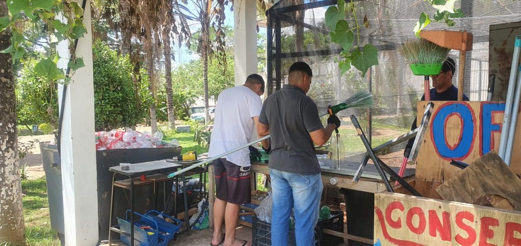 Capacitação e autonomia – Desde o início das atividades práticas, há três meses, dez adolescentes já foram capacitados e conquistaram autonomia para confeccionar as vassouras de forma independente. Com três a quatro encontros semanais, realizados em uma área aberta e adaptada na unidade, a oficina vai além da técnica, promovendo aprendizado e transformação social.