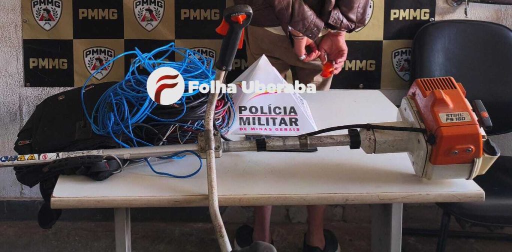 De acordo com informações apuradas pela Folha Uberaba, a prisão aconteceu no bairro Residencial Mangueiras, onde os policiais militares do Tático Móvel faziam patrulhamentos preventivos e, ao passarem próximo a uma “boca de fumo”, viram um indivíduo em atitude suspeita com uma ferramenta nas mãos, portando uma mochila. Ao perceber a presença policial, ele disfarçou e tentou fugir, mas foi abordado e identificado como um homem que já tinha várias passagens pelos meios policiais. As equipes fizeram buscas da mochila e encontraram fiação elétrica furtada e uma roçadeira. Em questionamentos, o criminoso relatou que furtou a fiação, além da roçadeira, em um imóvel. O suspeito de furto qualificado foi preso em flagrante, levado até a delegacia de Polícia Civil e apresentado ao delegado de plantão para esclarecer os fatos.