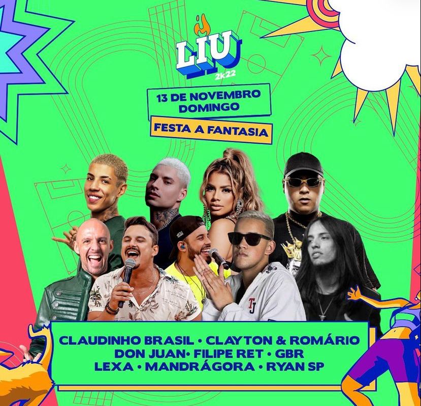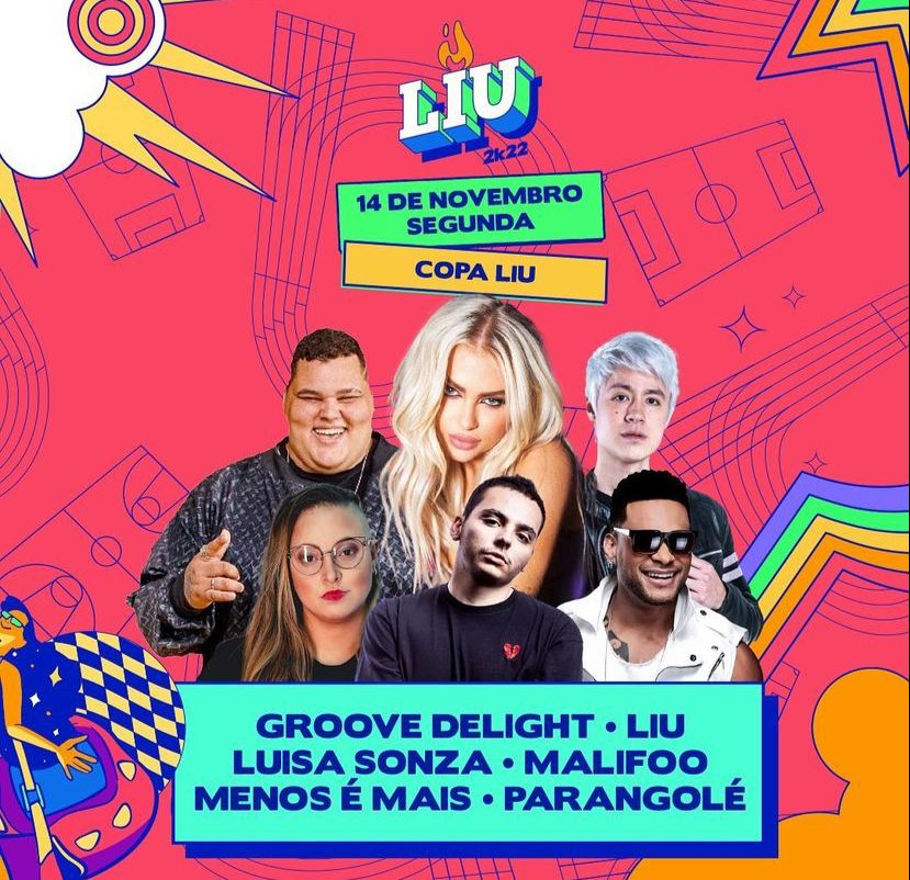 Dia 14 é da Copa LIU, com mais atrações que estão entre as preferidas da juventude: Groove Delight, LIU, Luisa Sonza, Malifoo, Menos é Mais e Parangolé.