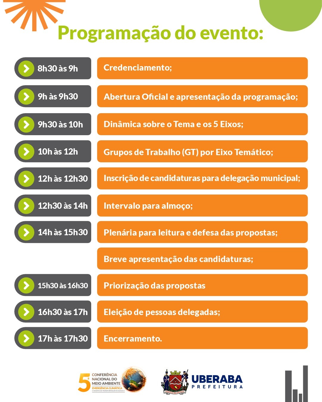 Estão abertas as inscrições para a 5ª Conferência Municipal do Meio Ambiente, promovida pela Prefeitura de Uberaba, por meio da Secretaria de Meio Ambiente (Semam). Os interessados podem se inscrever online pelo link https://forms.gle/q4ooeqrvnCki3czr5. O evento ocorrerá no próximo dia 11 de dezembro, às 8h30, no Centro de Educação e Tecnologia Ambiental (Ceta), localizado no Parque das Barrigudas – Avenida Randolfo Borges Júnior, nº 1000, Univerdecidade.
