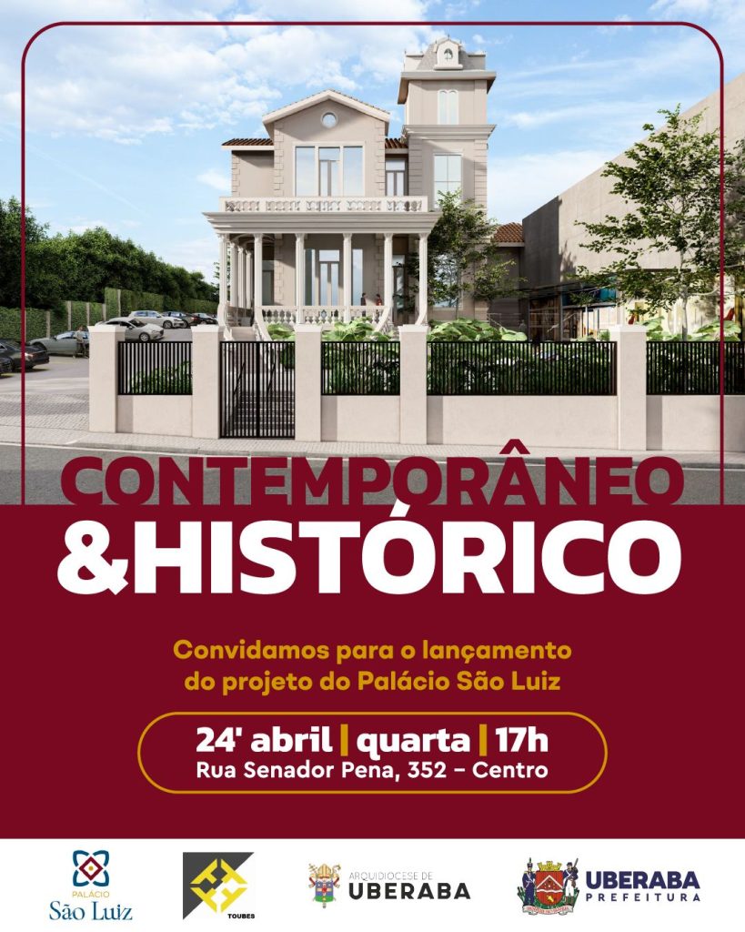Na próxima quarta-feira, dia 24, às 17h, será apresentado ao público o projeto de restauro do Palácio São Luiz. O evento é uma realização da Construtora Toubes e Arquidiocese de Uberaba, por intermédio da Prefeitura de Uberaba – através das secretarias de Desenvolvimento Econômico, Turismo e Inovação (Sedec) e de Planejamento (Seplan).