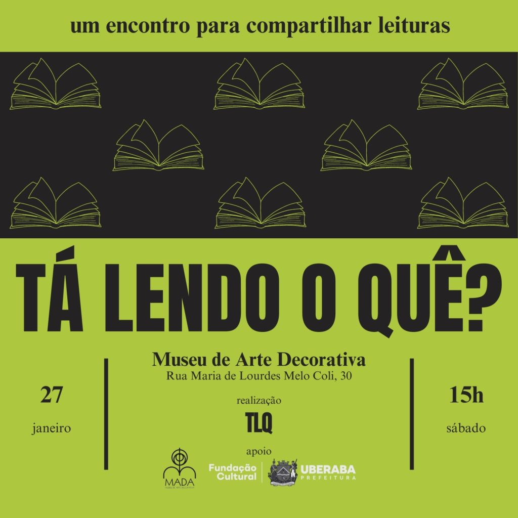 O Museu de Arte Decorativa (Mada) sediará o clube de leitura “Tá lendo o quê?”, no próximo sábado, 27, às 15h. Essa é mais uma ação, com apoio da Fundação Cultural de Uberaba “Professor Antônio Carlos Marques” (FCU).