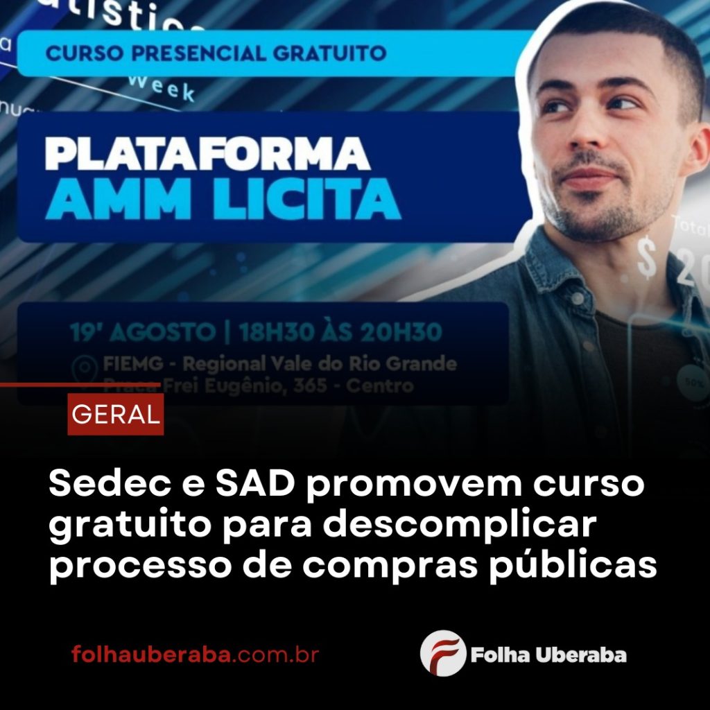 Na próxima segunda-feira (19), a Prefeitura de Uberaba, por meio da Secretaria de Desenvolvimento Econômico, Turismo e Inovação (Sedec) e da Secretaria de Administração (SAD), em parceria com o Sebrae, Associação Mineira de Municípios (AMM), Fiemg e Cigra, promoverá o curso presencial, gratuito, “Plataforma AMM Licita”. A capacitação acontecerá das 18h30 às 20h30, na Fiemg Regional Vale do Rio Grande, situada na Praça Frei Eugênio, 365, bairro Centro.