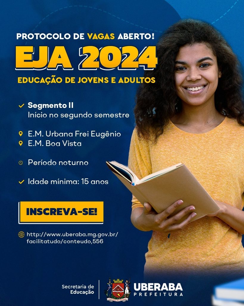 As unidades que oferecem o Segmento II são a E.M. Urbana Frei Eugênio e a E.M. Boa Vista, ambas com aulas no período noturno. A idade mínima para ingressar é de 15 anos e os interessados devem acessar o site da Prefeitura de Uberaba para preencher o protocolo de vagas, no endereço http://www.uberaba.mg.gov.br/facilitatudo/conteudo,556. Após o preenchimento do protocolo, a unidade entrará em contato com os cadastrados para efetuar a matrícula.