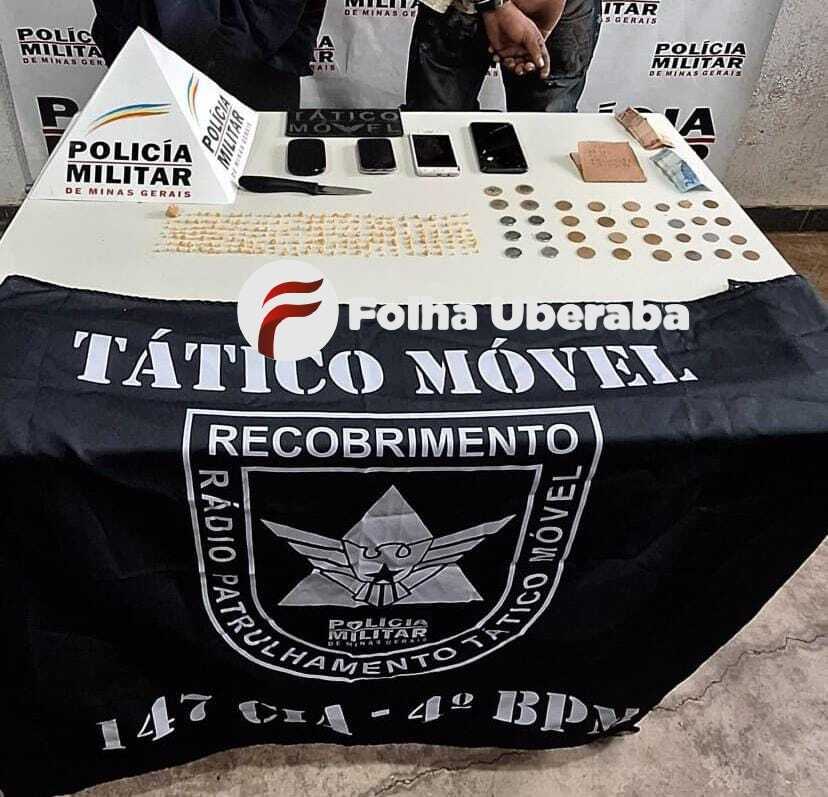 De acordo com informações apuradas pela Folha Uberaba, as prisões aconteceram em uma casa na rua Brasilino Sivieri, no bairro Leblon, em uma “boca de fumo”, onde os policiais militares compareceram após denúncias anônimas dos moradores das proximidades sobre um suspeito bastante conhecido nos meios policiais, que tinha deixado drogas no local para revenda. Então as equipes do Tático Móvel foram para as proximidades e ao chegarem na porta da casa, viram os dois suspeitos que, ao perceberem a presença policial, tentaram fugir, mas foram abordados identificados como dois homens, sendo um de 30 anos e outro de 49 anos. Durante buscas pessoais, os militares encontraram com um deles, duas pedras de crack grandes no bolso da blusa de frio e com o outro, uma bolsa preta contendo mais 194 pedras de crack, vários aparelhos celulares, dinheiro e uma faca utilizada para cortar as drogas. A dupla acusada de tráfico de drogas ao ser questionada, relatou que realmente um indivíduo conhecido nos meios policiais tinha deixado as drogas para revenda e que eles cobravam R$ 5 em cada pedra revendida. Os acusados de tráfico presos em flagrante foram levados até a delegacia de Polícia Civil para esclarecer os fatos.