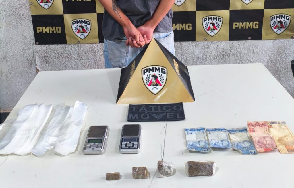 Um jovem acusado de tráfico de drogas foi preso por policiais militares no município. Entorpecentes e materiais foram apreendidos.